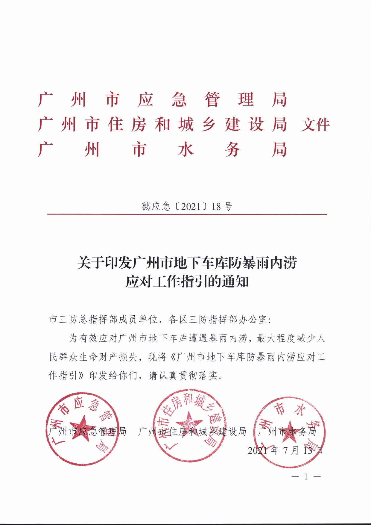 关于印发广州市地下车库防暴雨内涝应对工作指引的通知