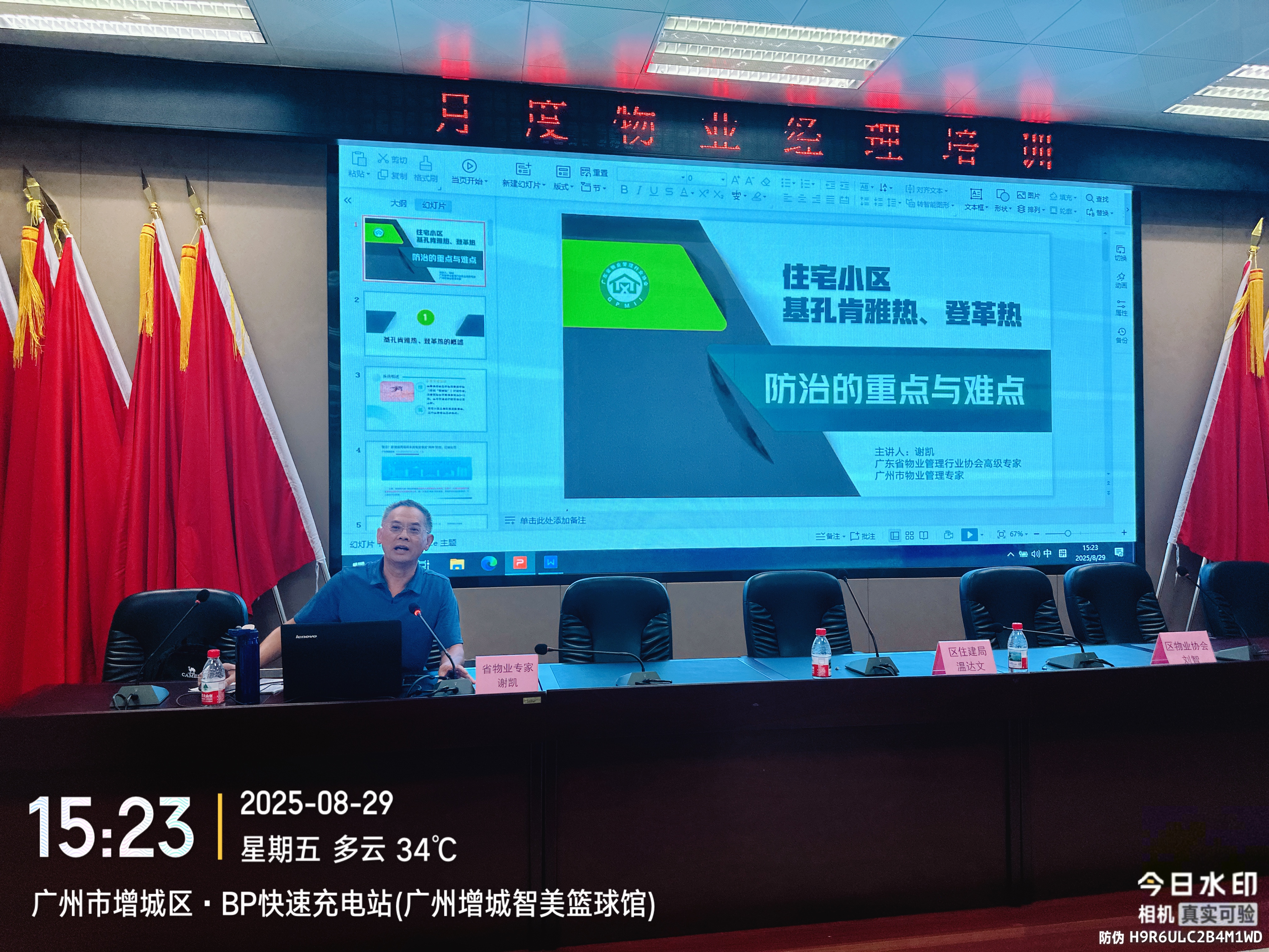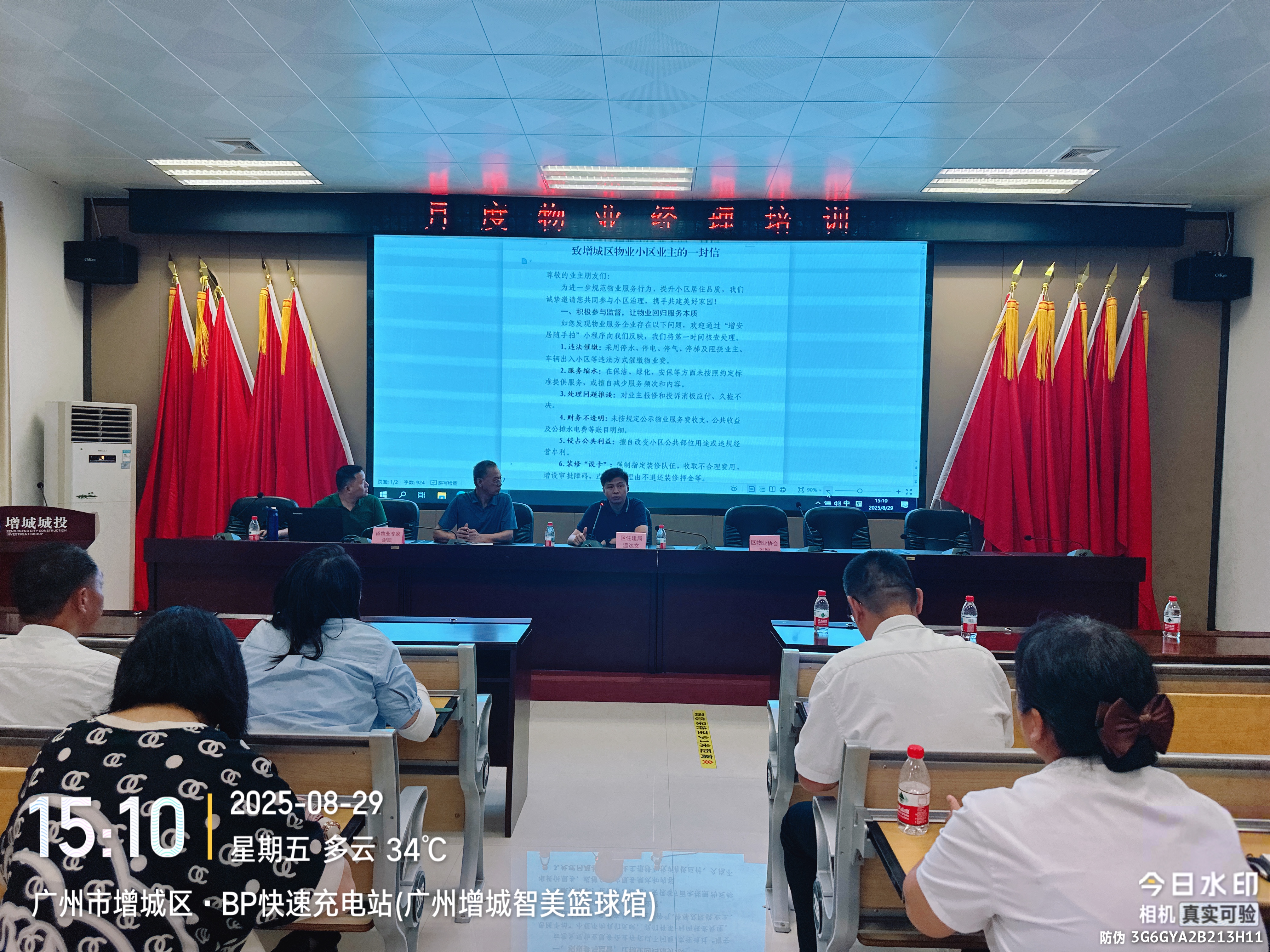 增城区物业管理行业协会于2025年8月29日星期五在增城区正源检测中心会议室成功召开了月度物业经理培训会议。全区各物业公司负责人、项目主管及相关工作人员约200余人参加了本次培训。