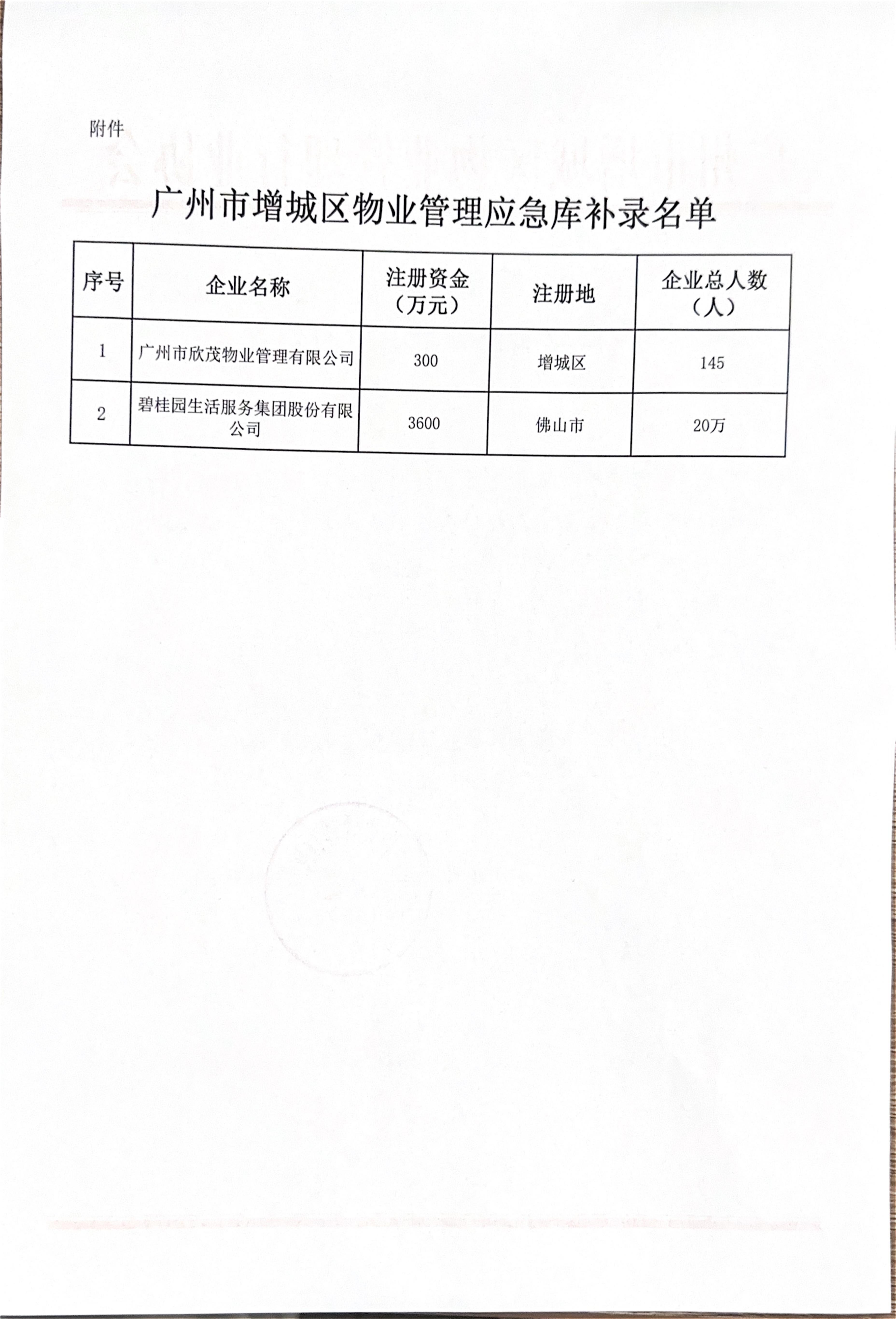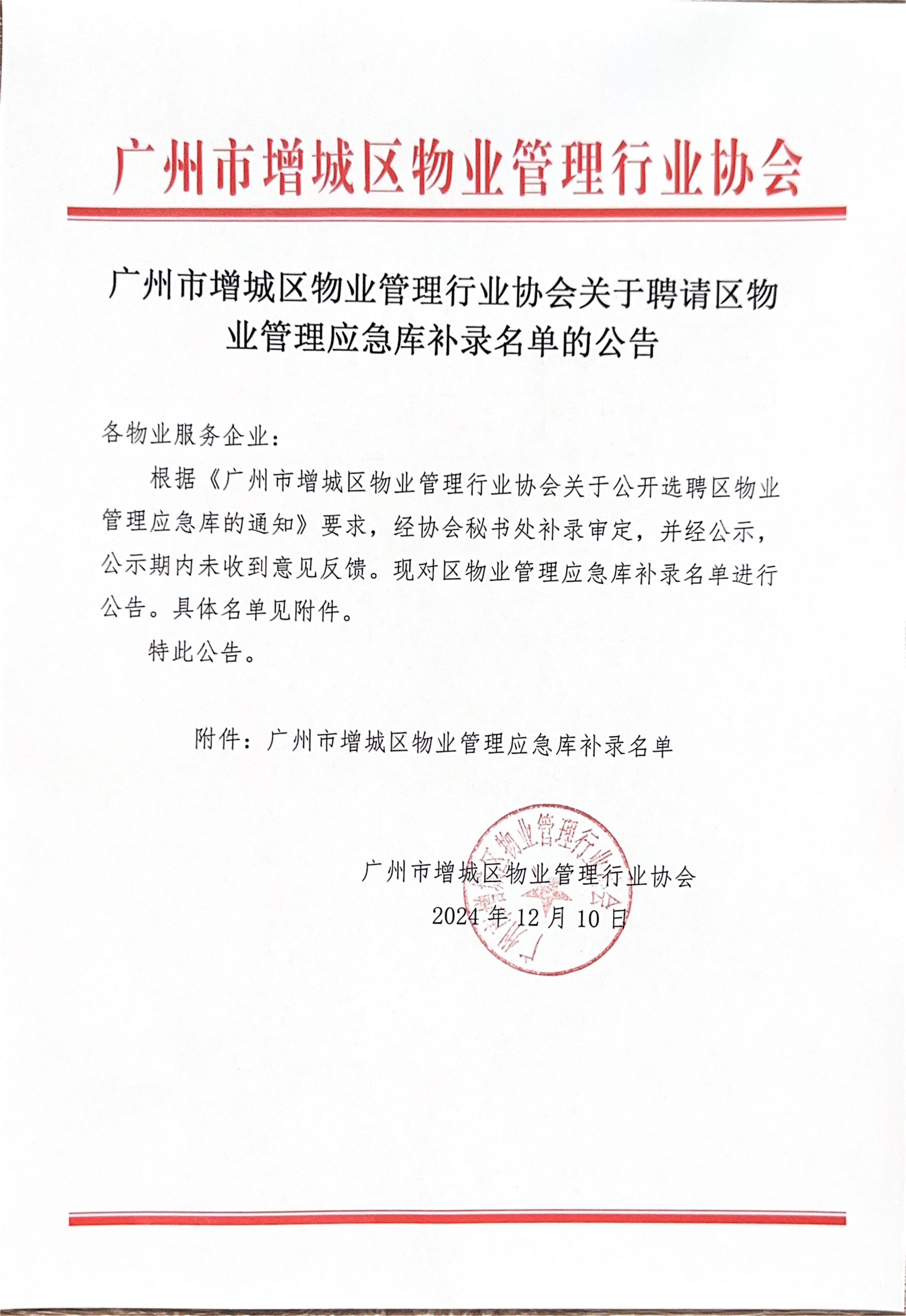 广州市增城区物业管理行业协会关于聘请区物业管理应急库补录名单的公告