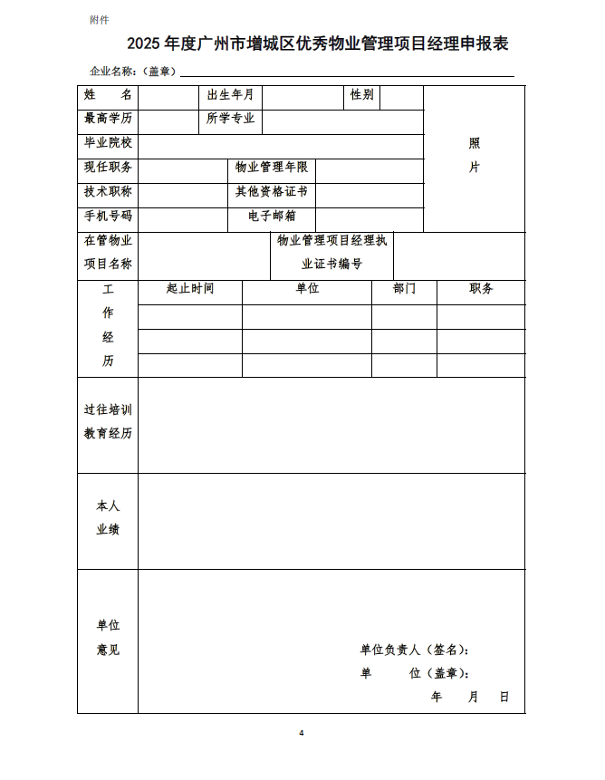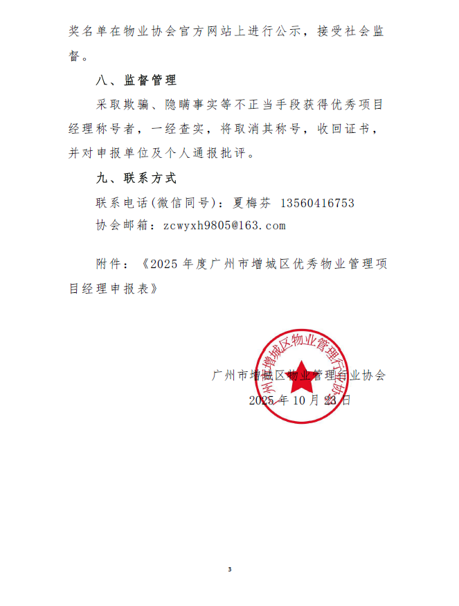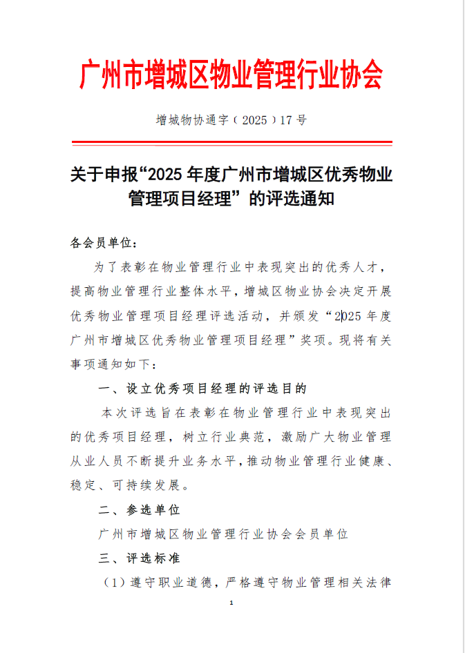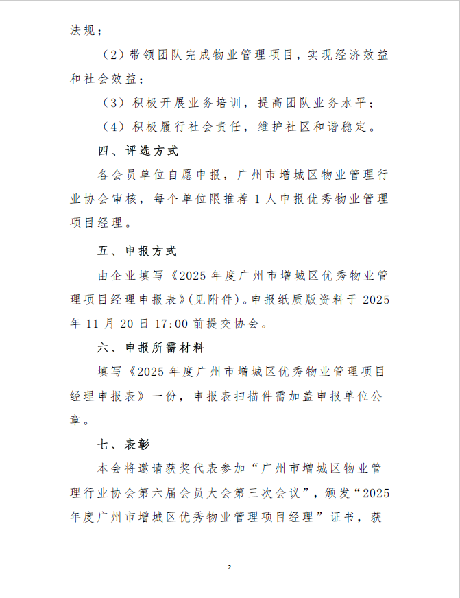 关于申报“2025 年度广州市增城区优秀物业 管理项目经理”的评选通知