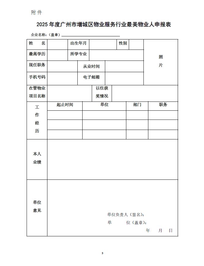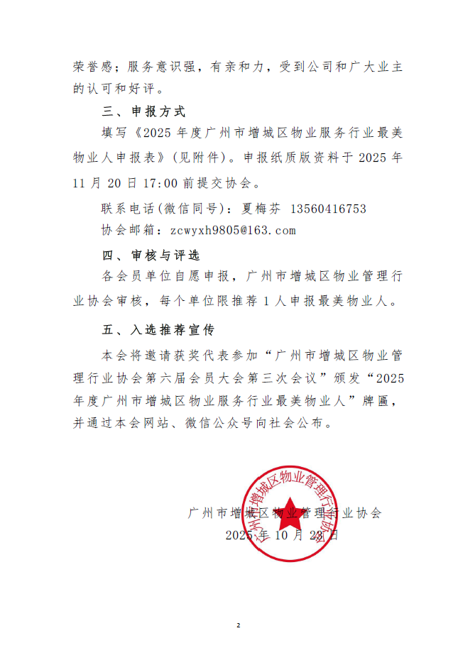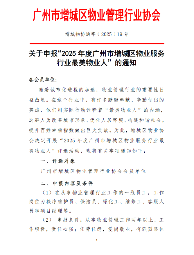 关于申报“2025 年度广州市增城区物业服务 行业最美物业人”的通知